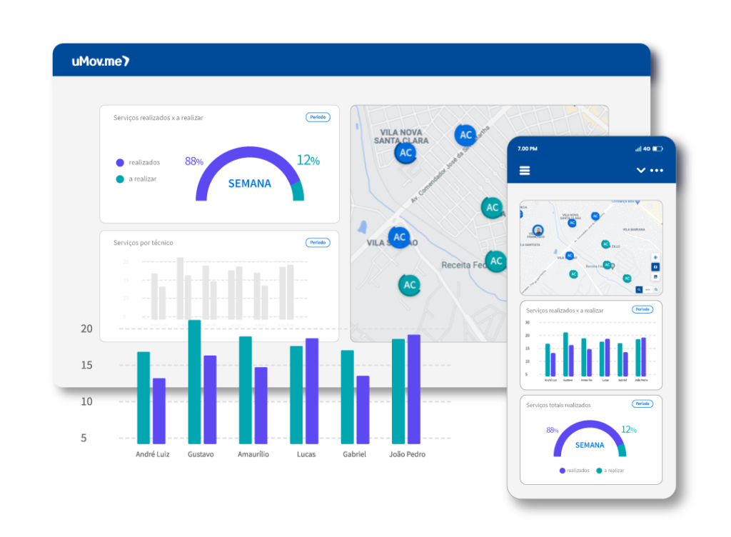 Com o painel de gestão, o gestor acompanha toda a operação em tempo real. Isso significa mais agilidade para tomar decisões, reprogramar atendimentos, distribuir novas ordens e agir de forma proativa diante de qualquer imprevisto.