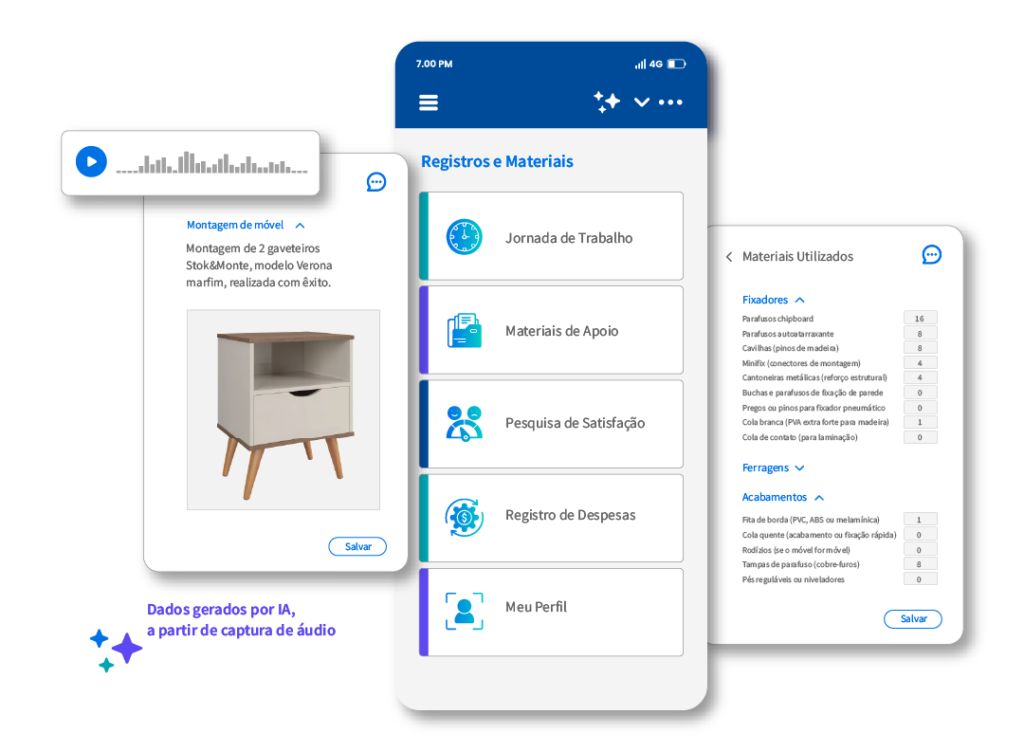 Soluções com IA que tornam o trabalho técnico mais produtivo, assertivo e conectado. A equipe sente o apoio da gestão em cada movimento.