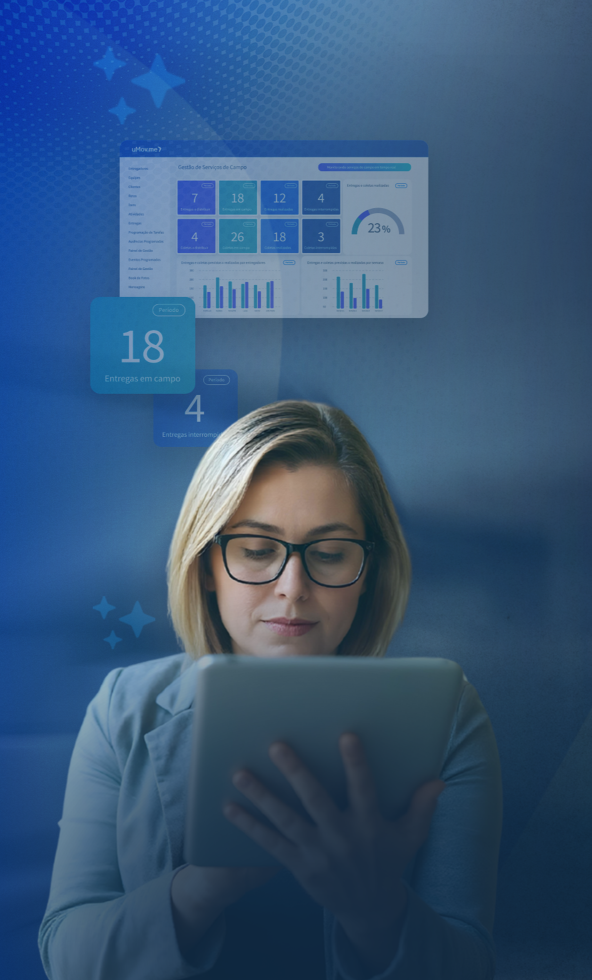 Nossas soluções automatizam a operação em tempo real, transformando cada deslocamento, visita e registro em dados de valor.